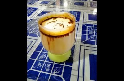 Recipe: – Add two tablespoons of instant coffee. – Add two tablespoons of sugar. – Add cold water (I did